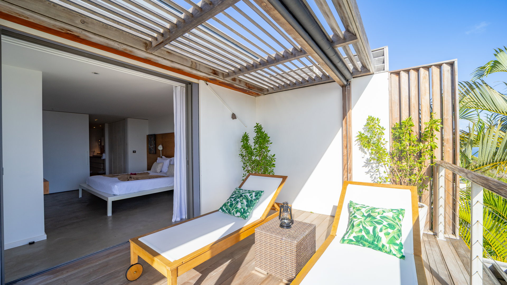 King or twin beds, soft fabrics, and soothing tones create an atmosphere of calm and comfort for a perfect night’s rest after a day of exploring St Barths.
