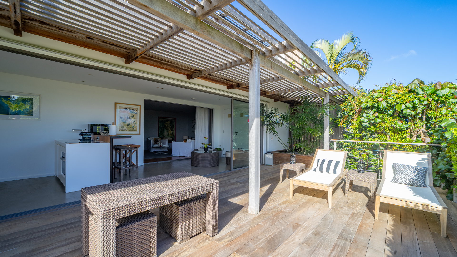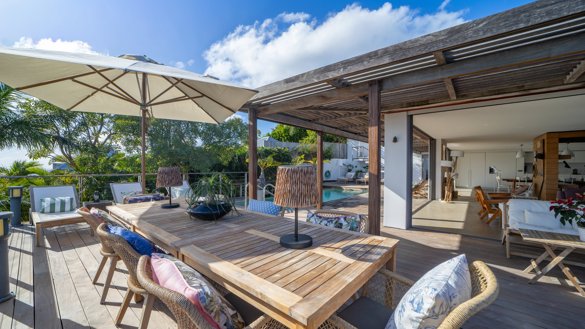 Facing the shimmering turquoise waters of Grand-Cul-de-Sac, this luxurious complex offers panoramic views, refined design, and the perfect harmony between privacy and togetherness. Ideal for families or groups of friends, Agave Estate accommodates up to sixteen guests in a setting of tropical elegance and serenity.
