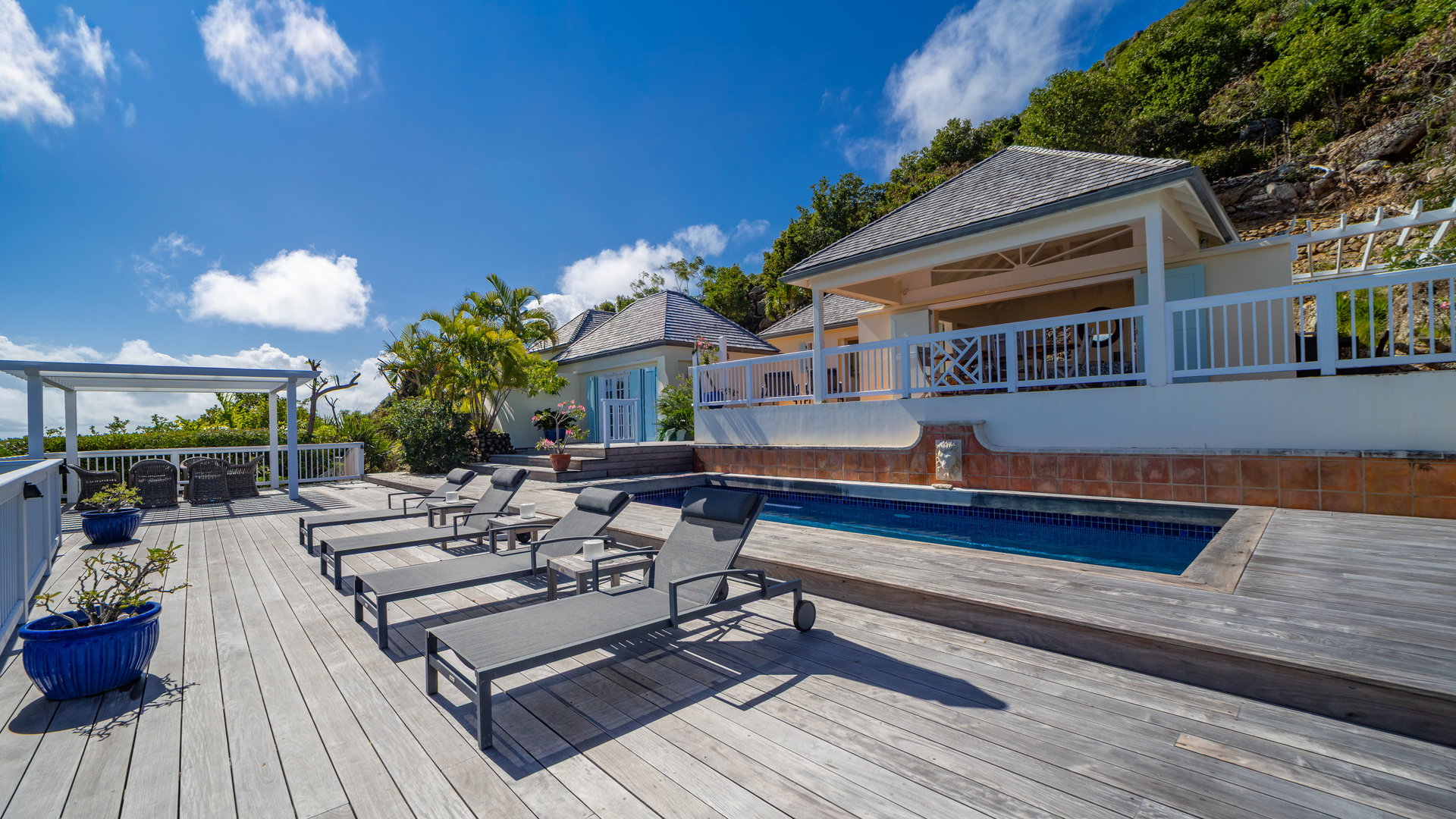 Set on the hills of Vitet, Villa CHEYENNE overlooks the turquoise waters of the Grand-Cul-de-Sac lagoon. With its breathtaking ocean views, three bedrooms, and private pool, this beautiful property offers the perfect retreat for families or friends seeking peace and Caribbean charm.