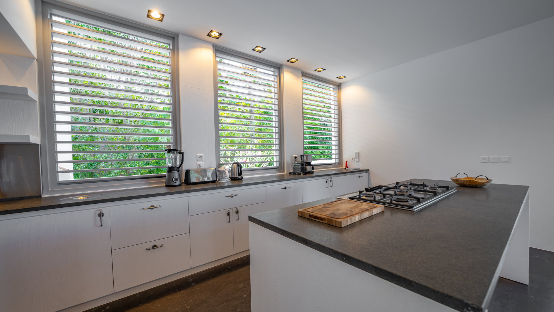 Villa EDEN HOUSE offers three air-conditioned bedrooms, each with an ensuite bathroom and TV:
