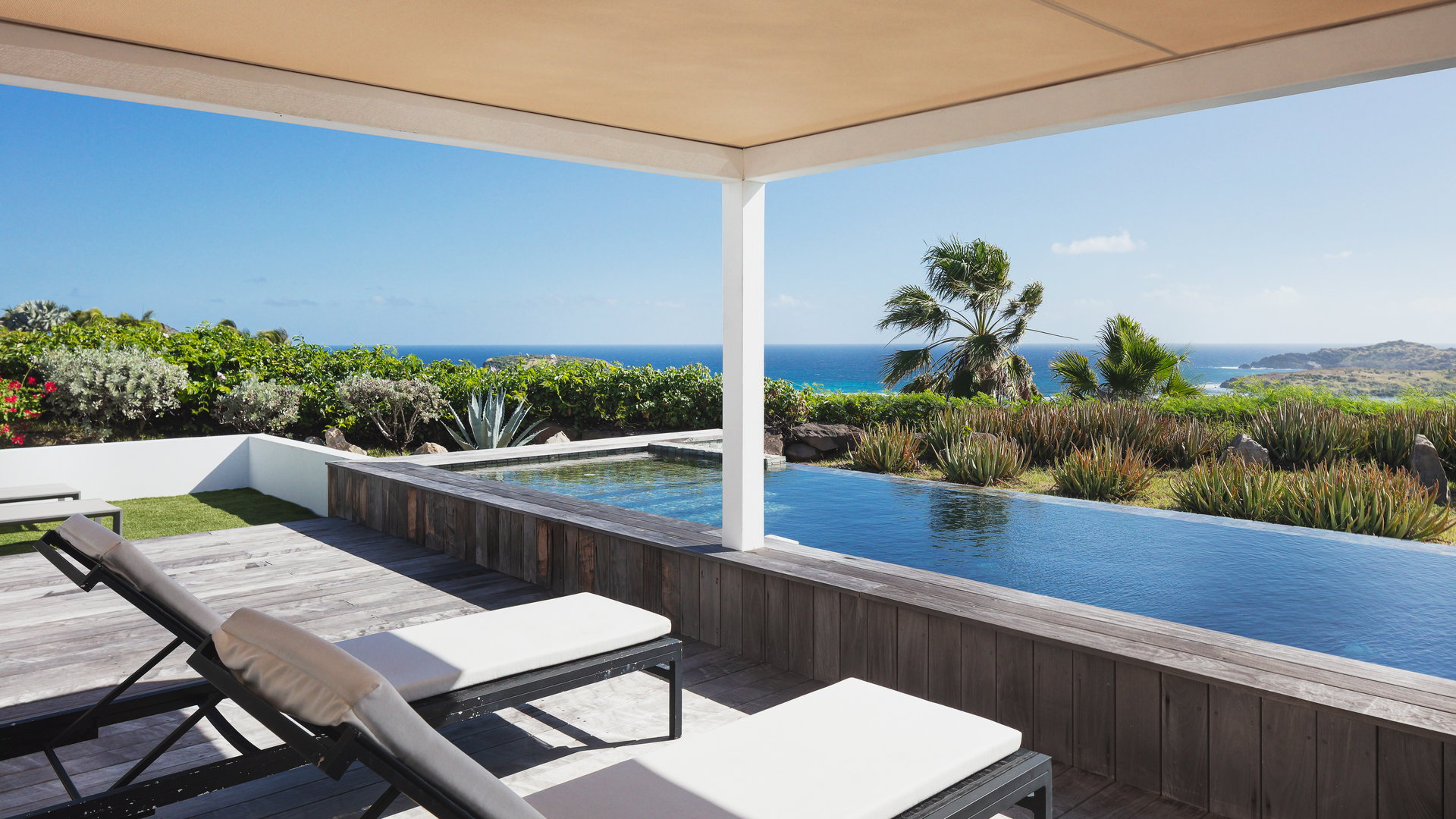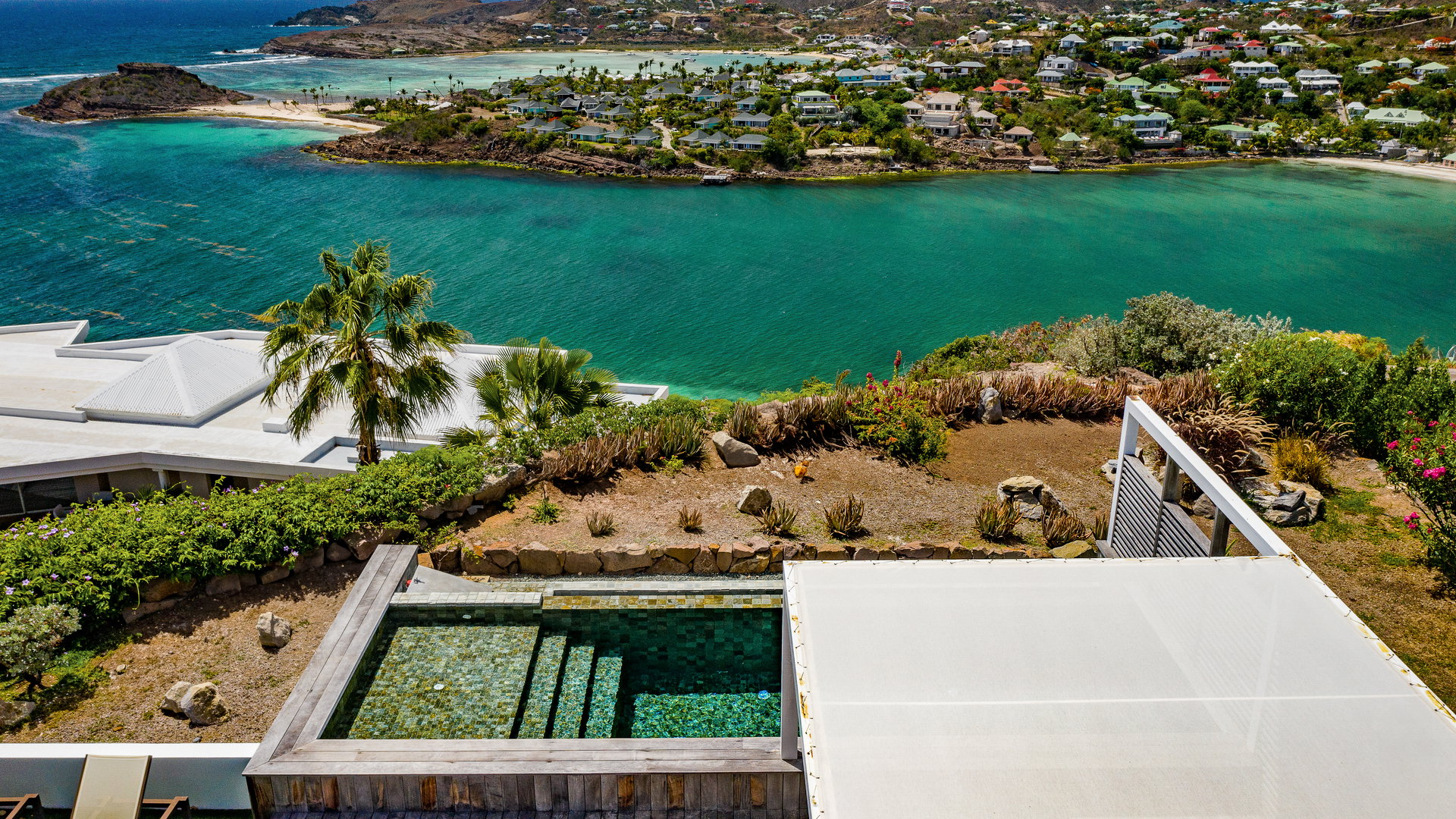 Overlooking the Caribbean Sea, Marigot Bay, Turtle Island, and the Grand-Cul-de-Sac lagoon, this serene retreat is perfect for honeymoons or intimate escapes in paradise.