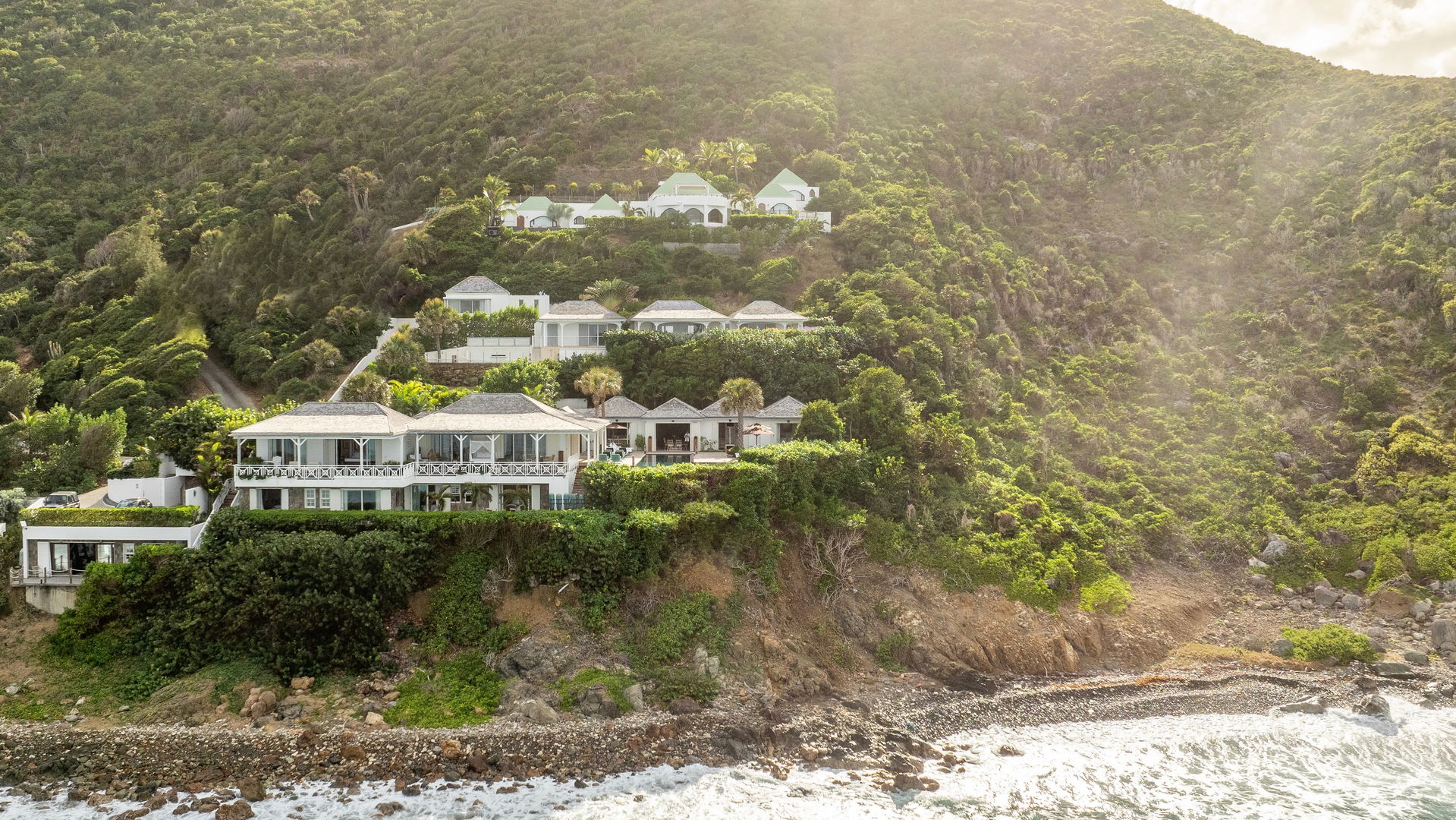 Each villa boasts expansive terraces with panoramic sea views, inviting guests to enjoy the tropical serenity of St. Barts.