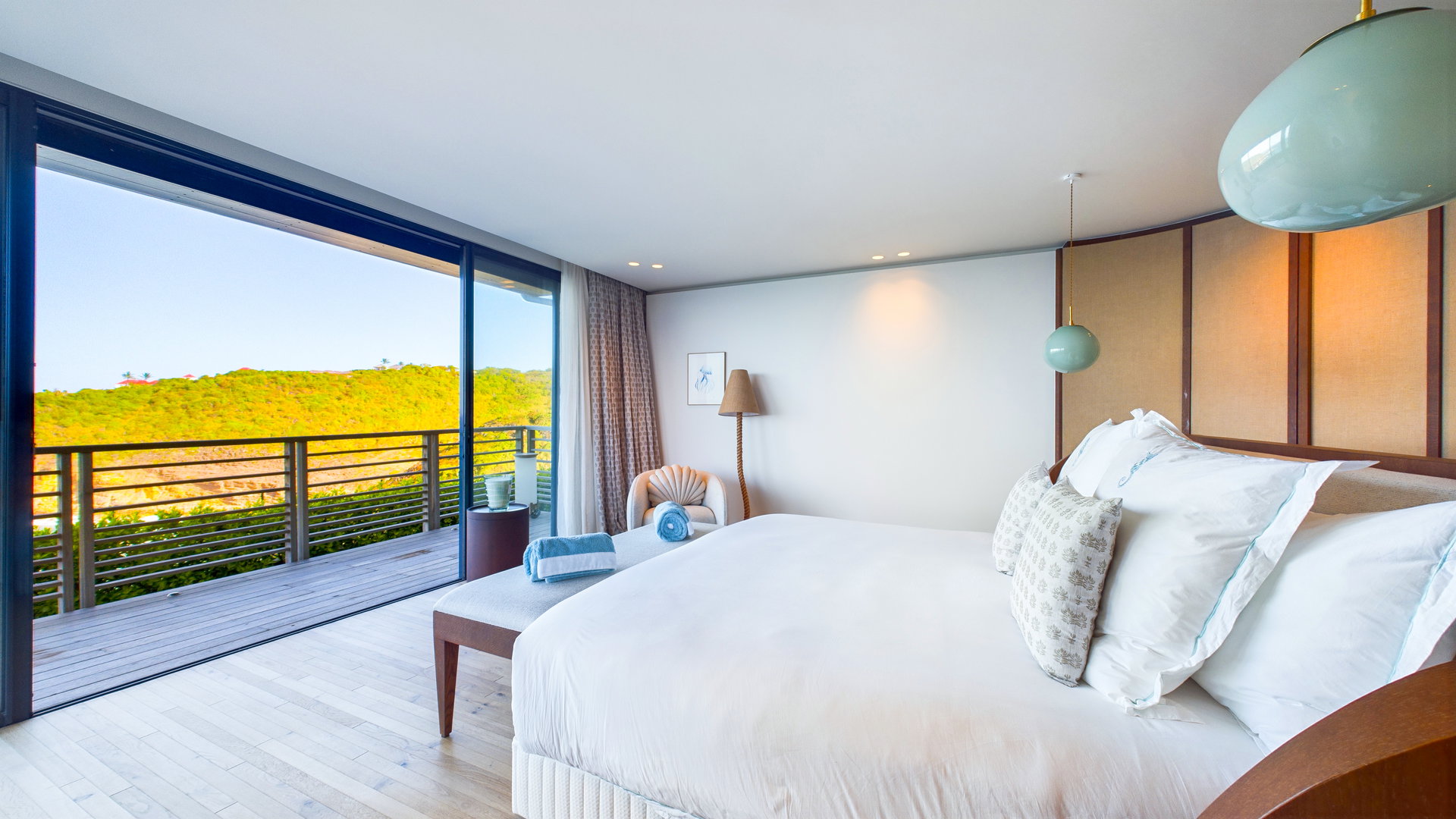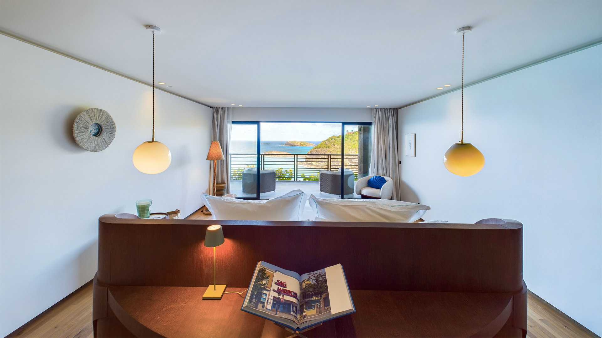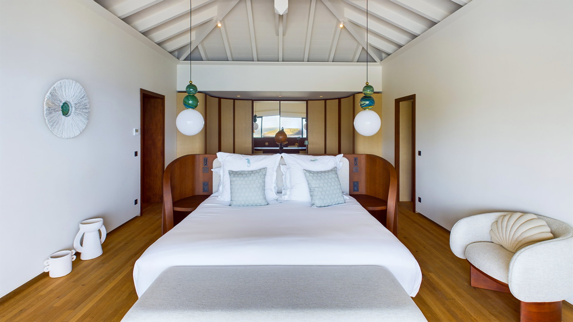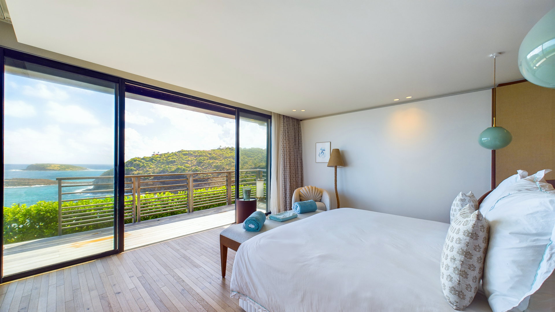 Villa BRAHAMA consists of eight bedrooms spread across two levels, each with a television and bathroom, including one shared bathroom as regards the children’s bedroom. Six bedrooms feature king‑size beds, one has a queen‑size bed, and the eighth is furnished with two 140‑cm bunk beds, the ideal setting for children who will share their bathroom with their parents. You’ll love the ocean or garden views, filling each bedroom with natural light and beauty, and ensuring complete relaxation in the gentle ambiance of St-Barths.