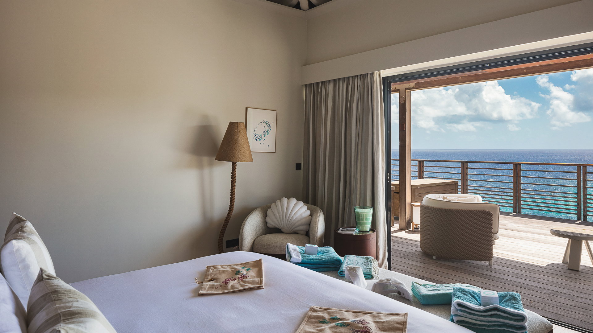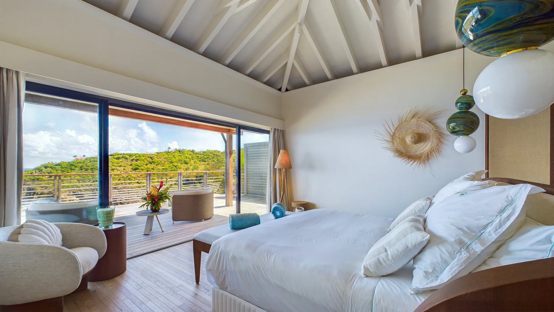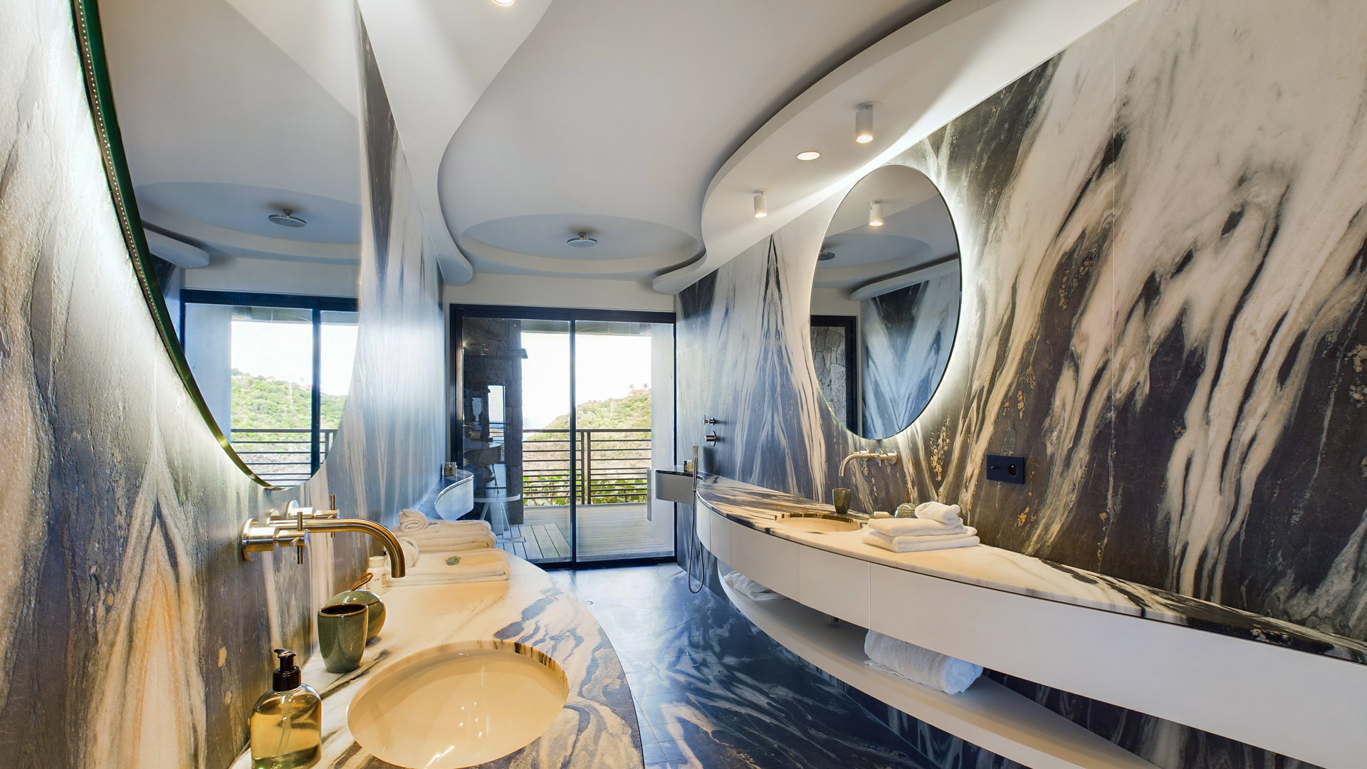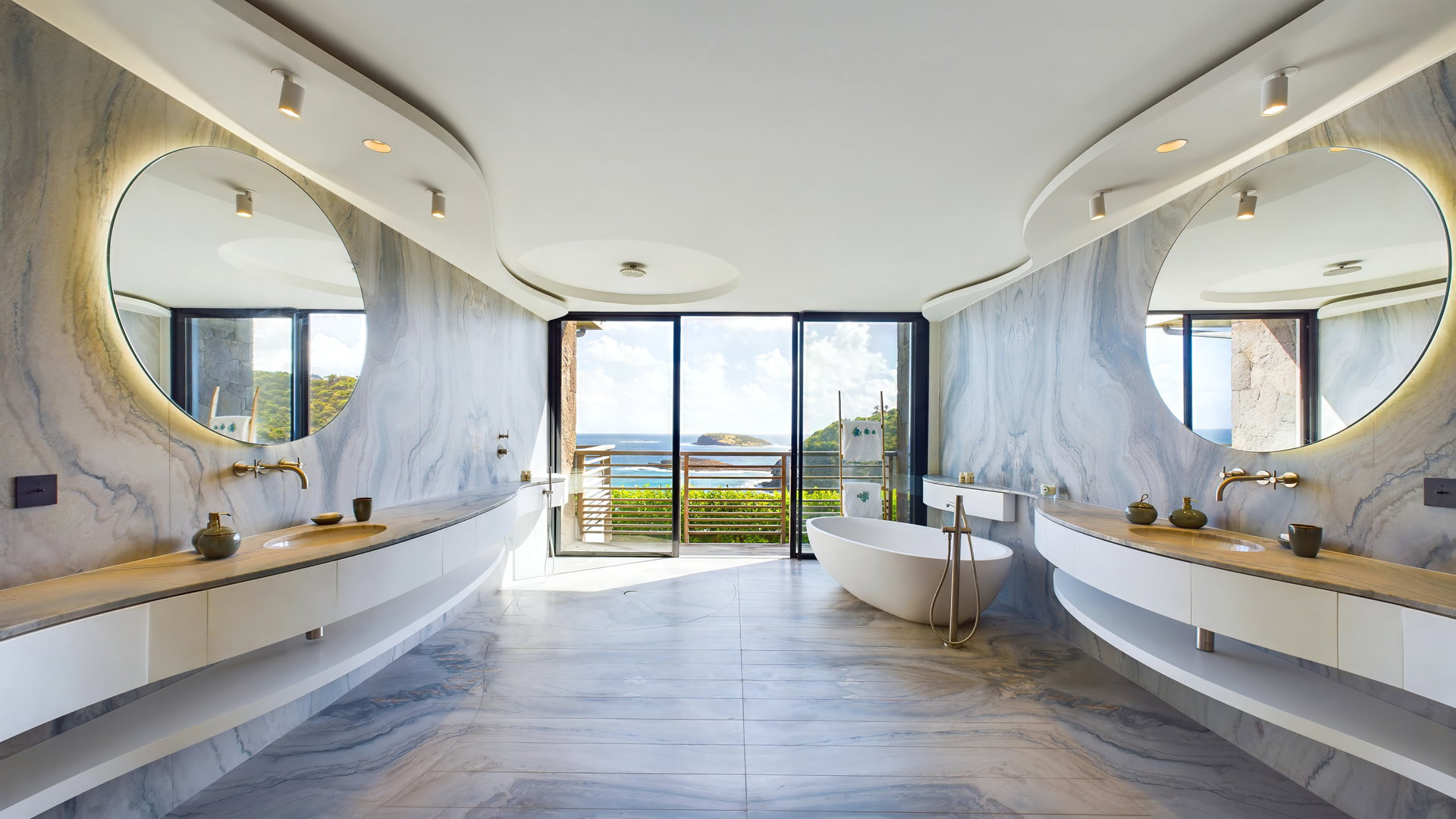 Villa BRAHAMA consists of eight bedrooms spread across two levels, each with a television and bathroom, including one shared bathroom as regards the children’s bedroom. Six bedrooms feature king‑size beds, one has a queen‑size bed, and the eighth is furnished with two 140‑cm bunk beds, the ideal setting for children who will share their bathroom with their parents. You’ll love the ocean or garden views, filling each bedroom with natural light and beauty, and ensuring complete relaxation in the gentle ambiance of St-Barths.
