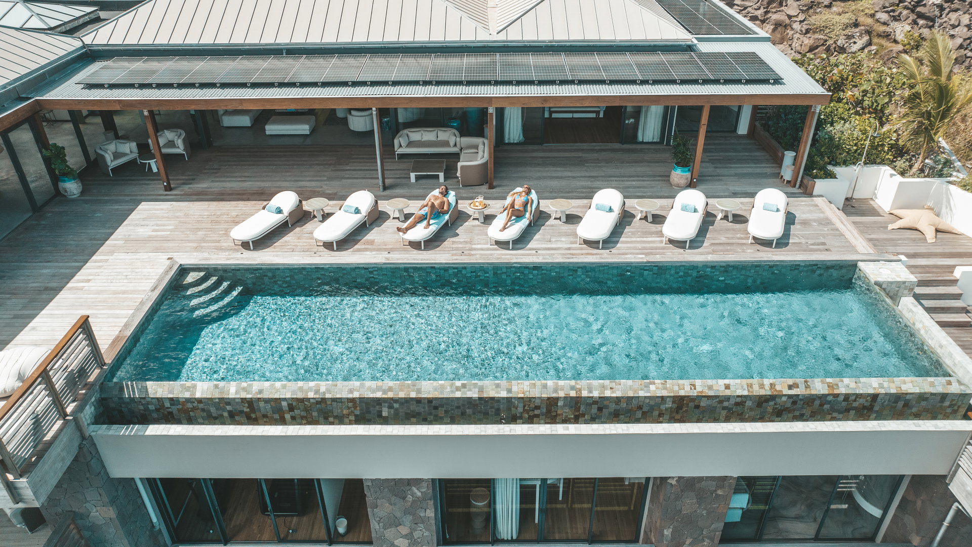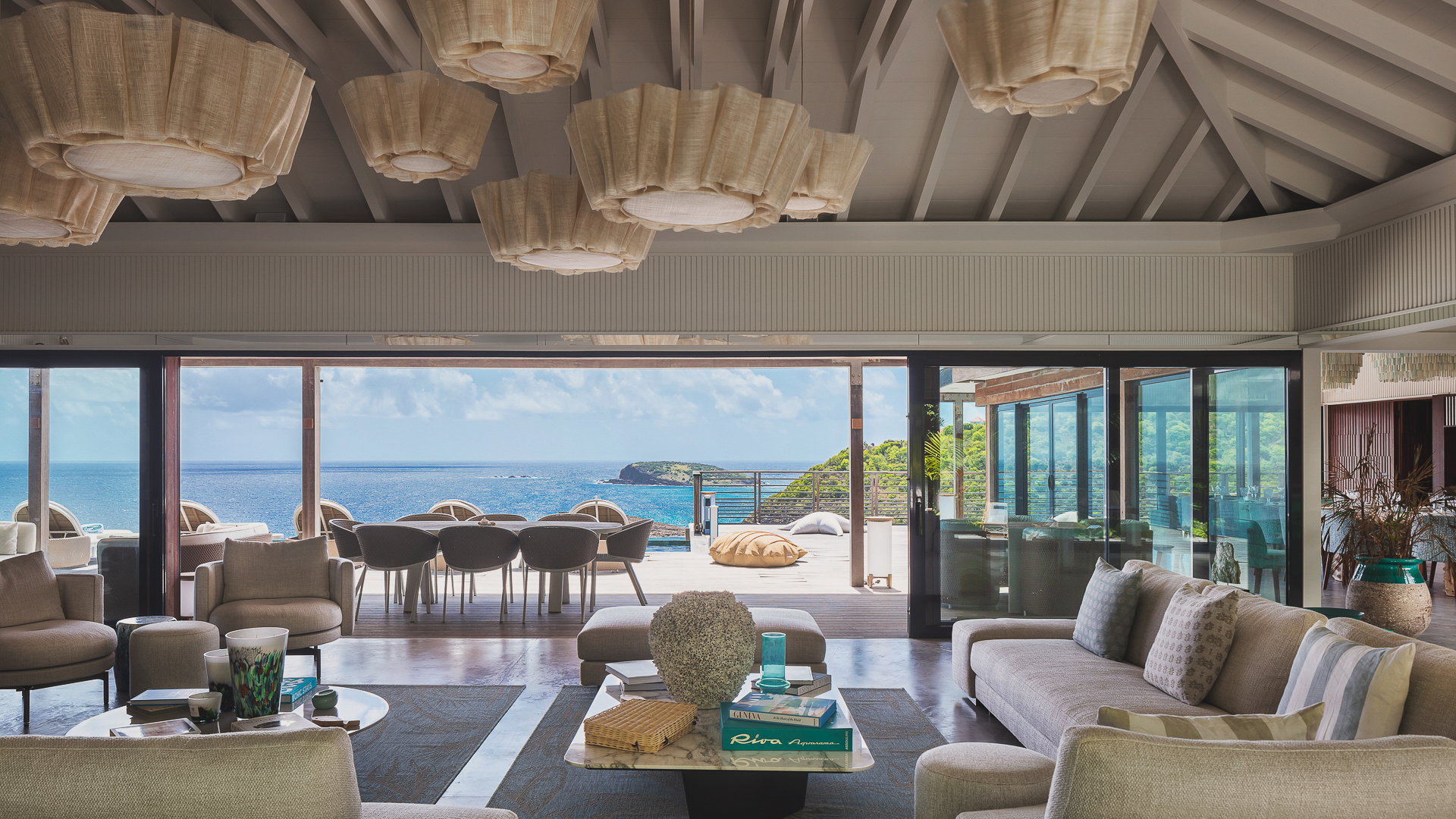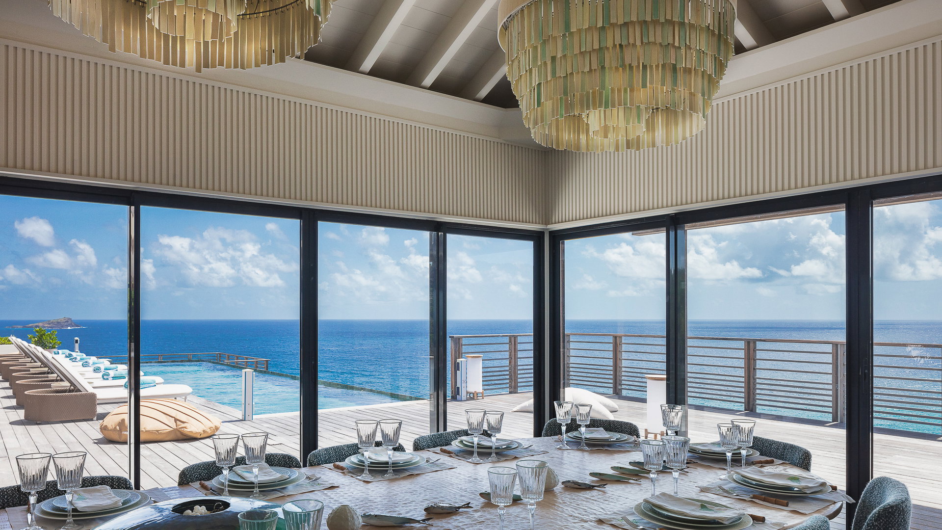 The rental villa BRAHAMA in St-Barths is a prestigious property overlooking a cove of crystal‑clear waters in the sought‑after area of Pointe Milou. With a breathtaking panoramic view of the ocean, this St-Barths vacation home welcomes its guests in a luxurious and elegant setting. Featuring eight bedrooms, an infinity pool, a fitness room, and a dedicated massage space, villa BRAHAMA welcomes groups of friends and large families for an extraordinary Caribbean escape.
