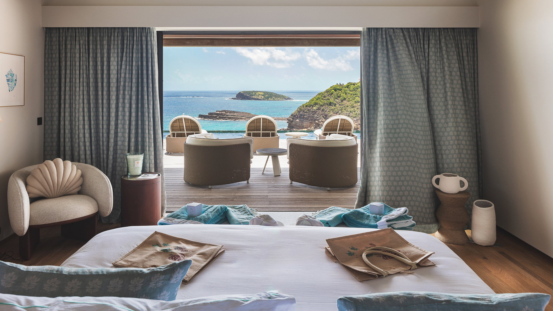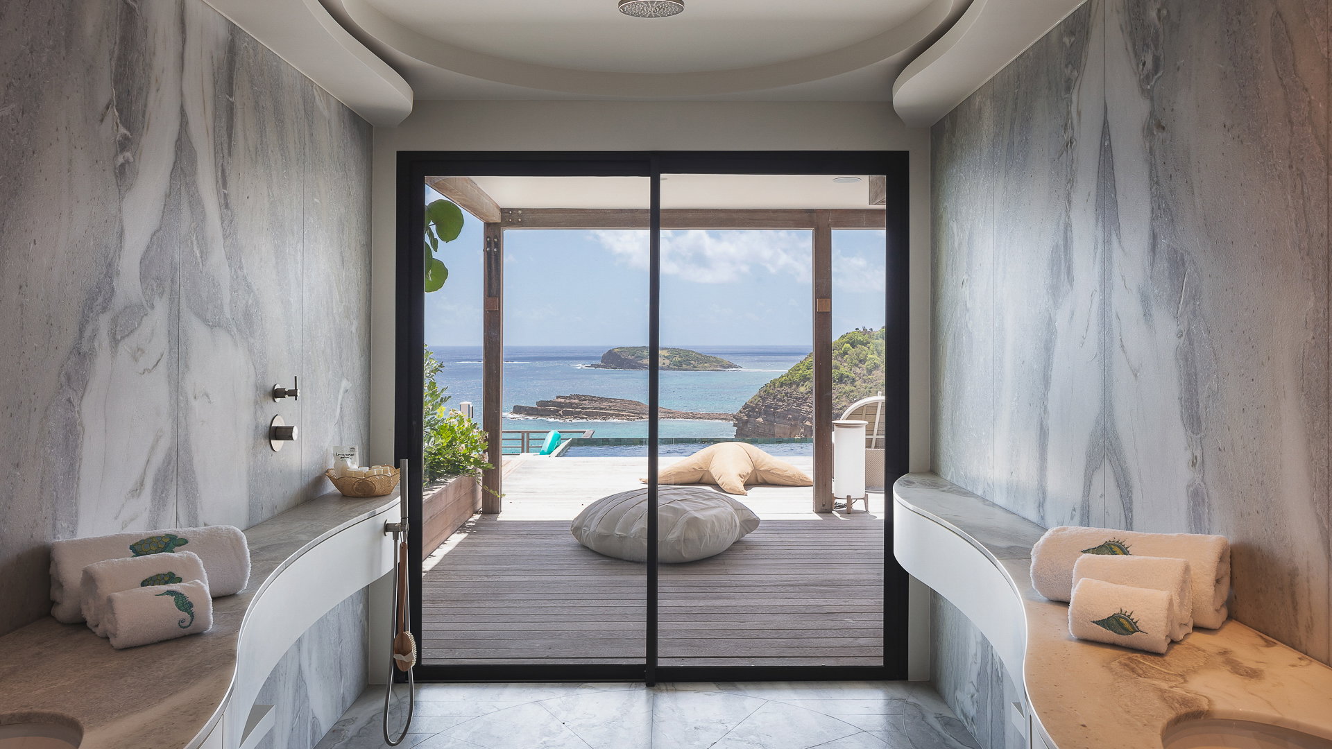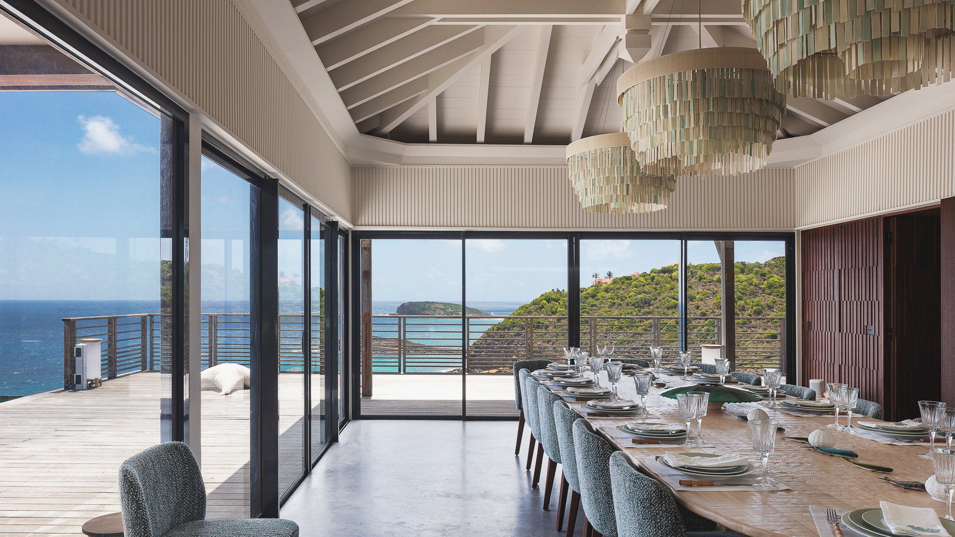 The rental villa BRAHAMA in St-Barths is a prestigious property overlooking a cove of crystal‑clear waters in the sought‑after area of Pointe Milou. With a breathtaking panoramic view of the ocean, this St-Barths vacation home welcomes its guests in a luxurious and elegant setting. Featuring eight bedrooms, an infinity pool, a fitness room, and a dedicated massage space, villa BRAHAMA welcomes groups of friends and large families for an extraordinary Caribbean escape.