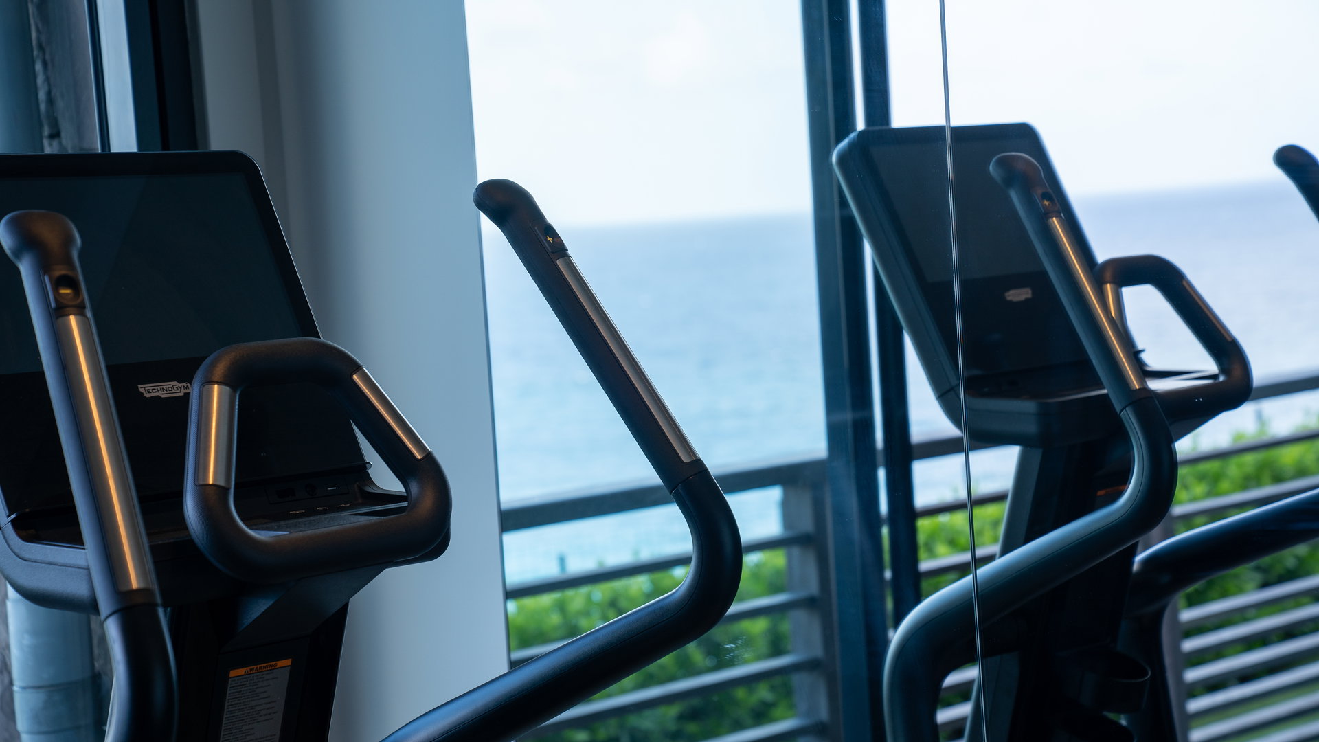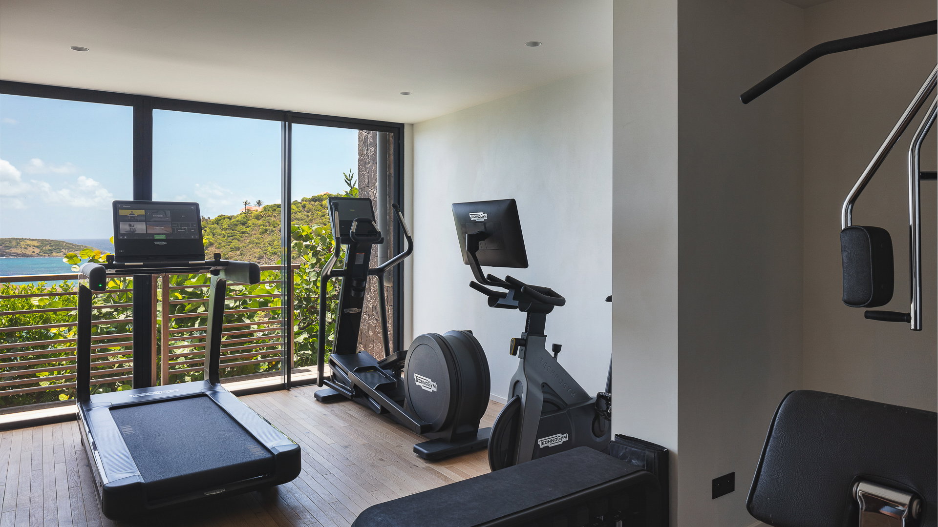 Located on the lower level. View of the ocean and vegetation. Air conditioned. Treadmill, bicycle, elliptical bike, exercise bench, dumbbells. Next door massage room.