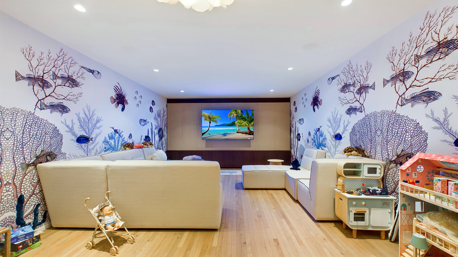 Located on the Lower level. Air conditioned and entertainement room, with 2 Sets of single bunk beds, and a large HD-TV with Apple TV.