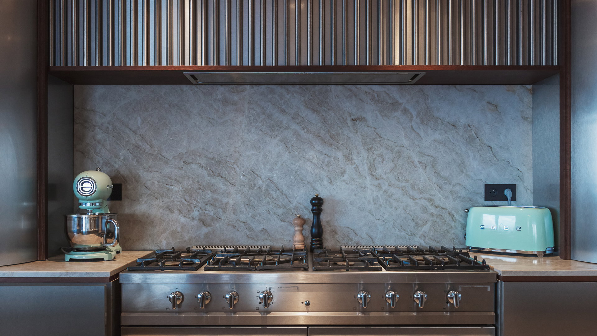 Located at the entrance level. Air-conditioned and well-equipped, spacious and modern, professional calibre with refined and low lines in counters and cupboards, Gaggenau appliances. Two fridges/freezers, oven, hotplates, microwave, espresso and Nespresso coffee machine, kettle, blender, dishwasher, toaster, plancha, wine cellar, dishes and cutlery, plants, lamps, lights. Air conditoned dining area, with a large indoor wooden table for twelve people. Another smaller dining area on the back of the living-area.