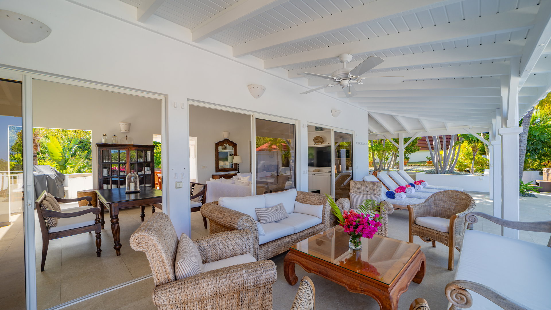 Lounge area opening onto the terrace. Air-conditioning, HD-TV, Dish Network, Apple TV, Bose sound system. Outdoor lounge area on the covered terrace.
